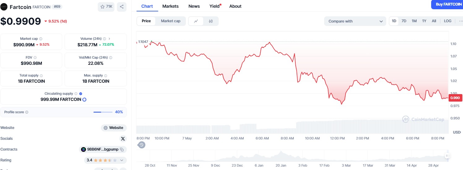 Fartcoin loses steam after hitting $1 billion valuation