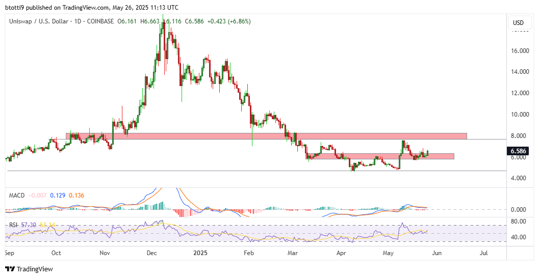 - Uniswap (UNI) price has jumped above $6.5 as bulls retest a key resistance zone.
