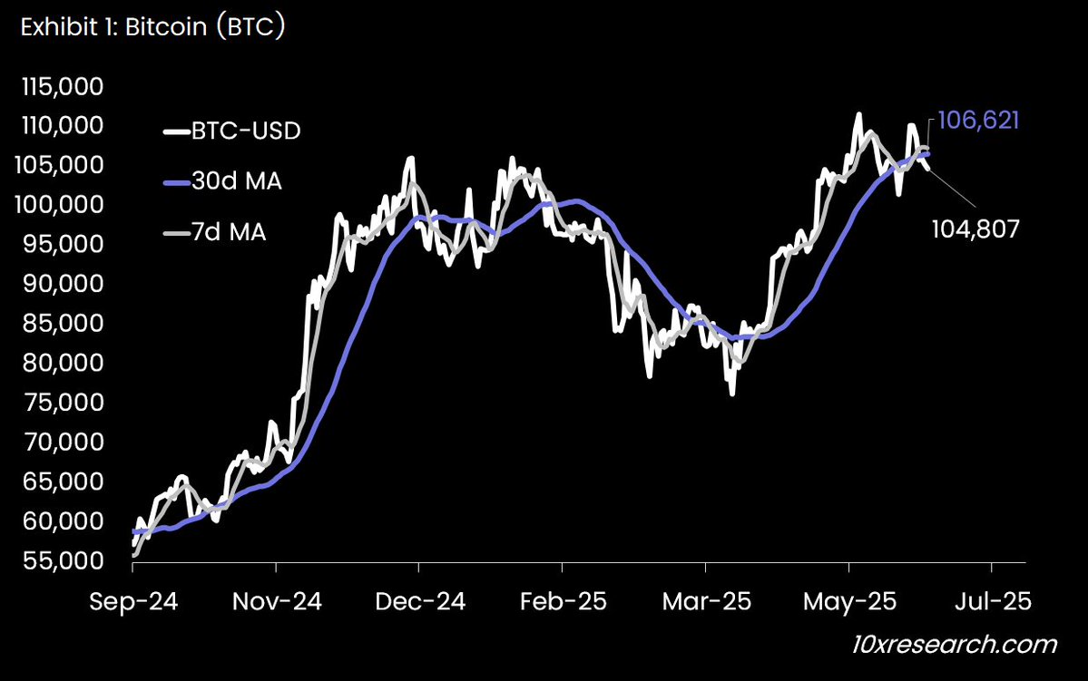 Bitcoin (BTC) has fallen below its 30-day moving average, signaling short-term caution for traders. Still, long-term sentiment remains buoyed by strong institutional inflows and a rise in treasury allocations. Despite escalating geopolitical tensions, BTC’s resilience highlights growing confidence from corporate treasuries and asset managers.
