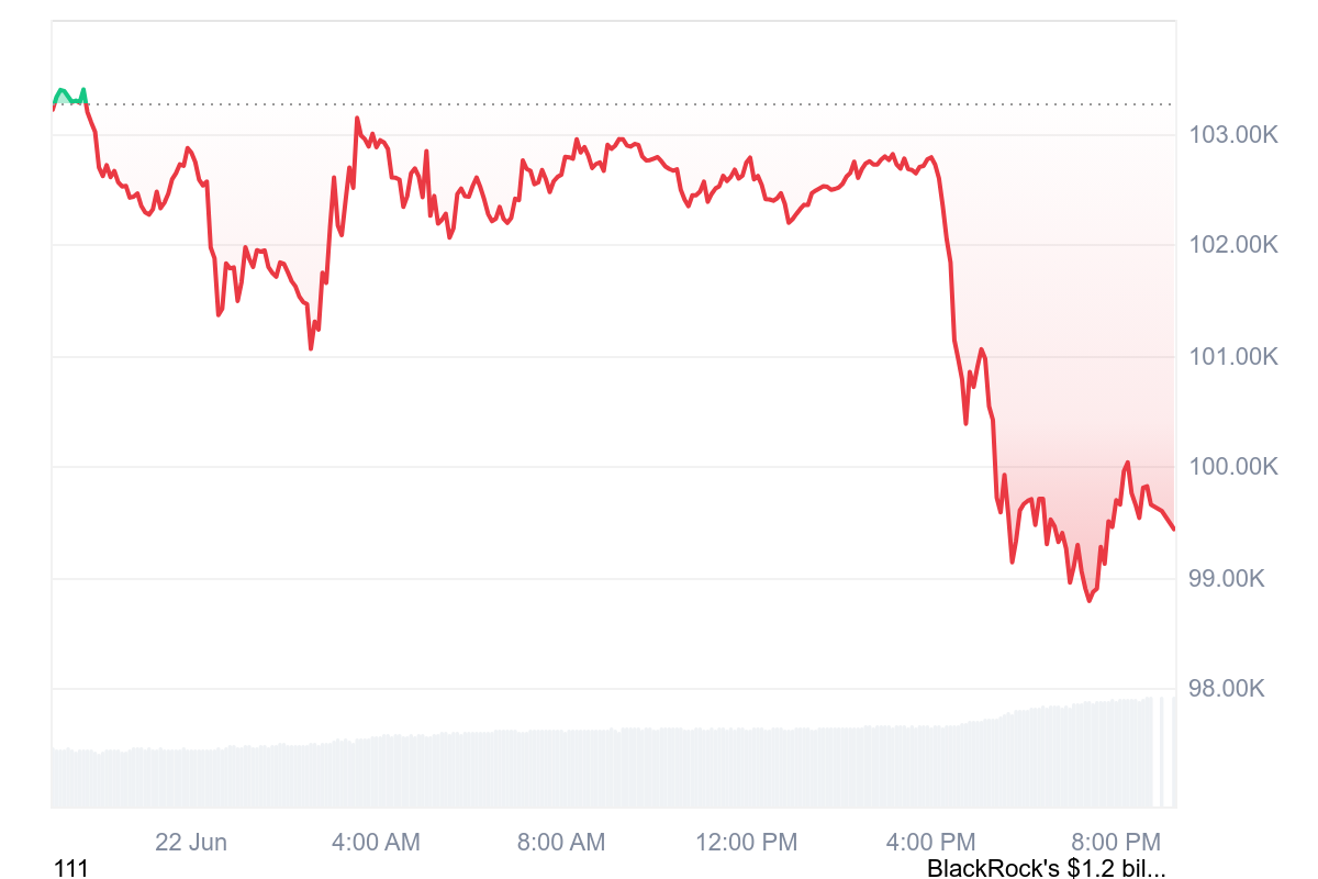 The bounce comes after the cryptocurrency slid below $100,000 for the first time since May, while Ethereum experienced a significant decline, following President Donald Trump’s announcement of US military strikes on Iran’s three primary nuclear facilities.