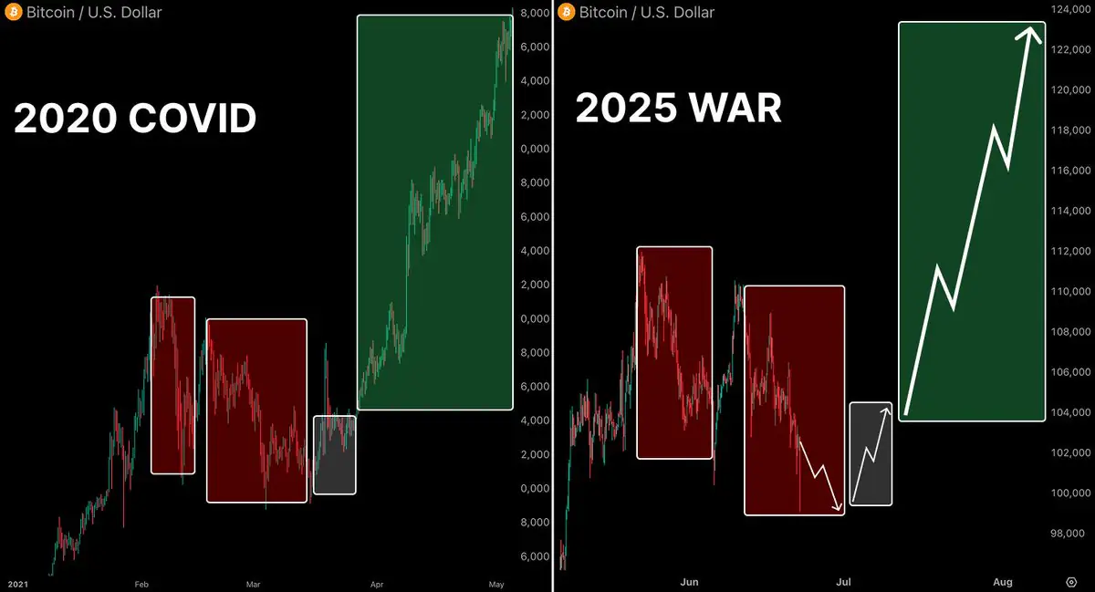 One of the most striking comparisons being made is to the market dump of March 2020, which was followed by a massive “alt rally.” Crypto analyst “Atlas” shared a chart illustrating the uncanny resemblance between the current market downturn and the “2020 COVID” crash, which ultimately triggered a “full reset and 1000x alt rally.”
