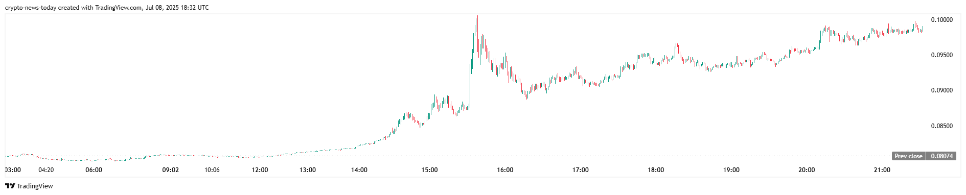 Cronos, the native token of Crypto.com’s ecosystem, climbed to $0.09858 with a market cap surpassing $3 billion. Its 7-day rally now stands at over 23%, suggesting growing interest in its DeFi and blockchain offerings.