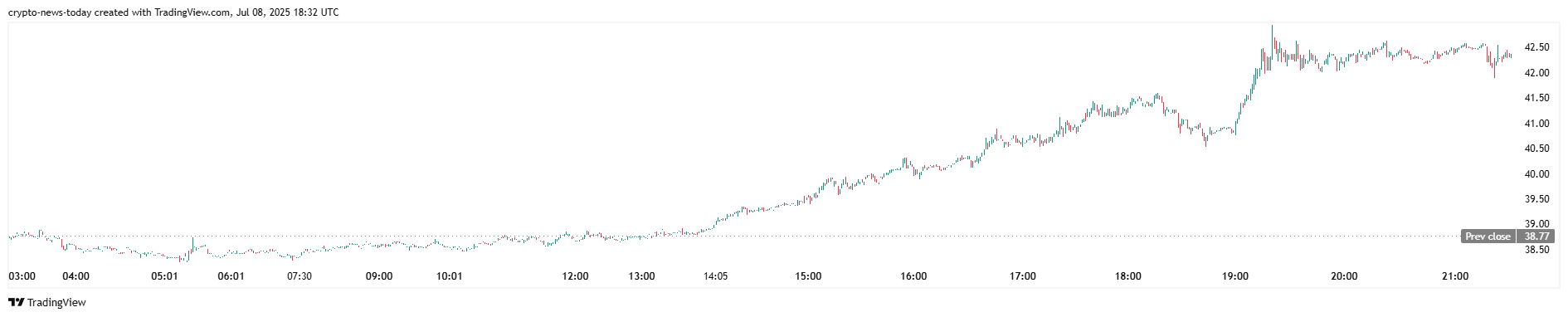 Zcash (ZEC), the privacy-focused cryptocurrency, also made the leaderboard with a 10.63% daily increase, pushing its price to $42.29. The renewed demand for privacy coins may be fueling this move, with Zcash’s market cap nearing $708 million.