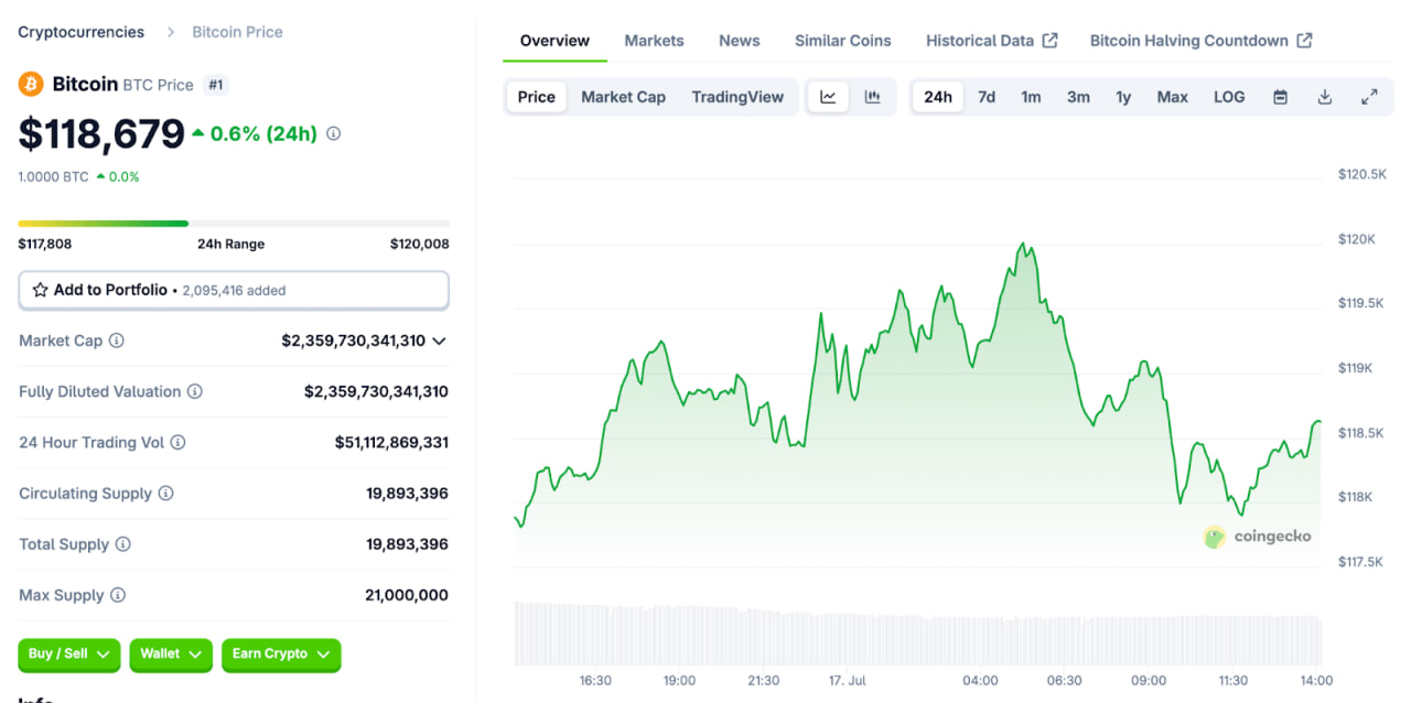 This inflow activity has helped stabilize BTC well above the $122K mark, with the price now standing at $118,679 as of July 17, 2025, with ETF volumes rising during each U.S. market open. Analysts note that sustained ETF accumulation provides strong price support and reduces volatility in the medium term.