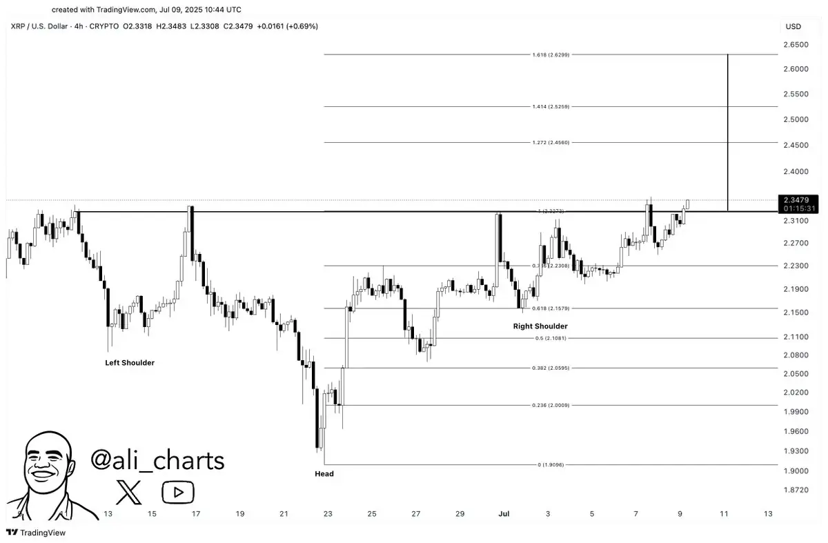Technical analyst Ali Martinez flagged a key pattern forming since mid-June — an inverse head-and-shoulders — which has now completed with a breakout.