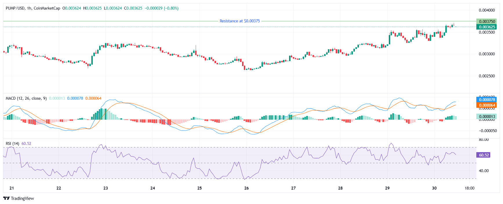 From a technical perspective, the PUMP token has broken above its short-term moving averages, with indicators such as the Relative Strength Index (RSI) and MACD being bullish.