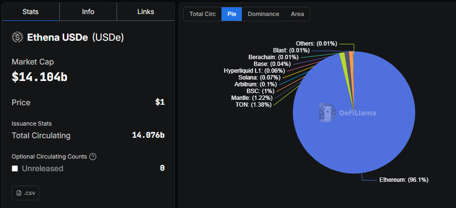 DeFiLlama data shows it boasts over $14.076 billion in circulating supply, and around $14.104 billion in market cap.