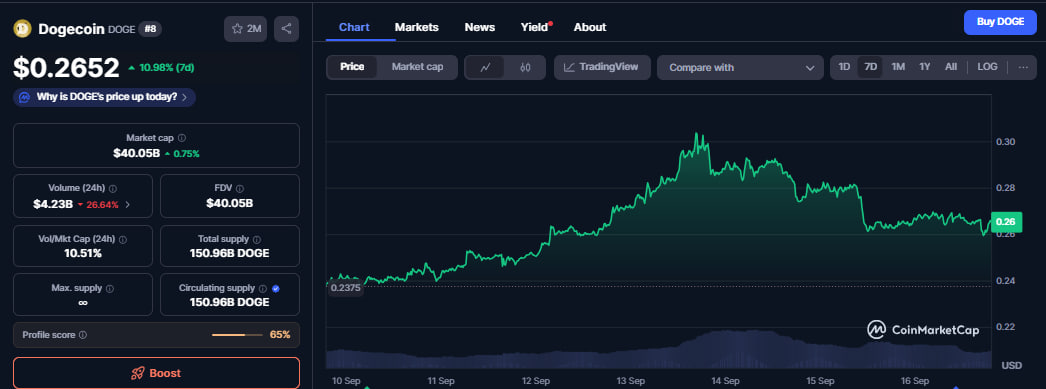 It has gained more than 10% in the past week to $0.2652.
