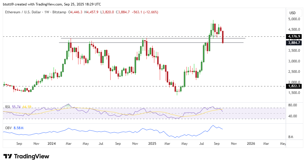 While bulls could reclaim the area above $3,860 and eye $4,000, analysts are pointing to a critical breakdown in the On-Balance Volume indicator as a potential signal for further losses.