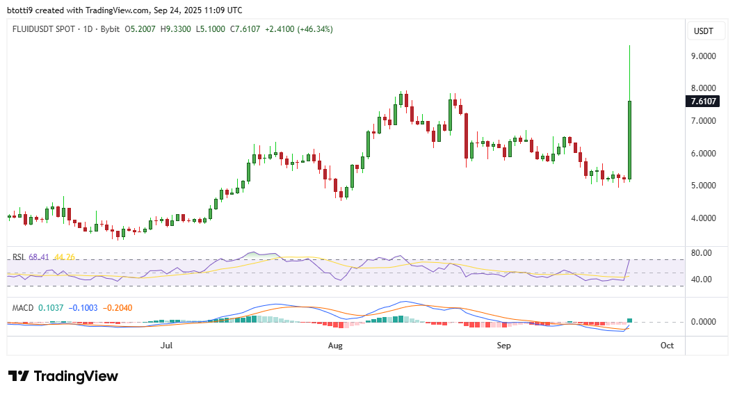 The post Fluid price jumps 50% after Upbit listing: bulls target $10 appeared first on CoinJournal.