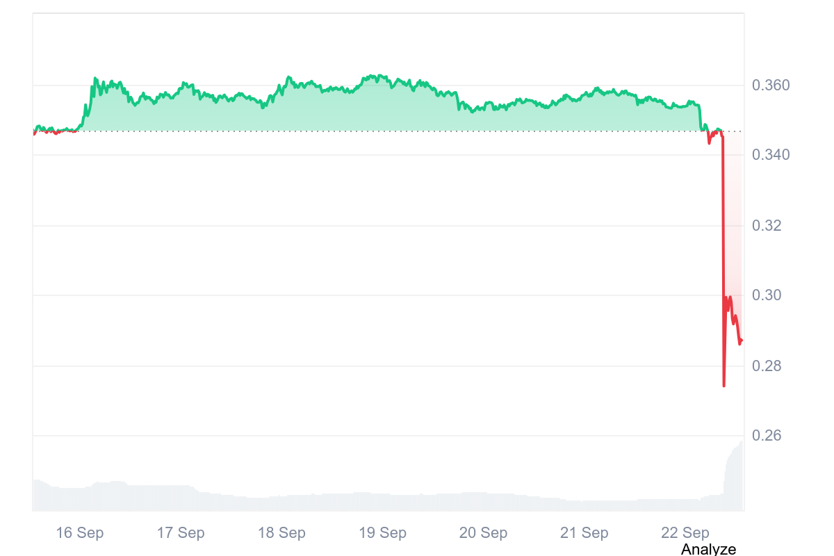 Pi Network’s PI token plummeted more than 20% on September 22, 2025, settling near $0.28 at the time of writing.