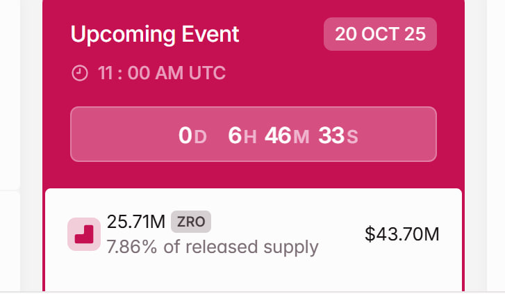 Keep in mind that LayerZero unlocks 25.71 million tokens on the 20th of each month.