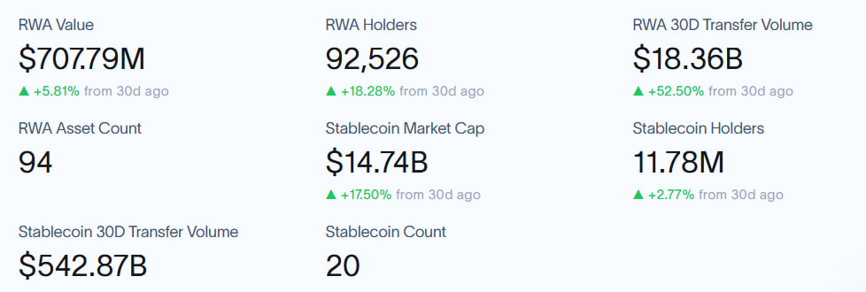 - RWA holders jumped 18% the past month, indicating amplified adoption.