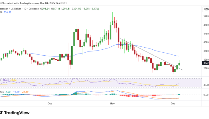 A break above $0.30 could open the door toward $0.51 in the near term, according to CoinLore, although the token remains far below its all-time high, and the 200-day EMA near $0.47, which stands as a formidable resistance zone.