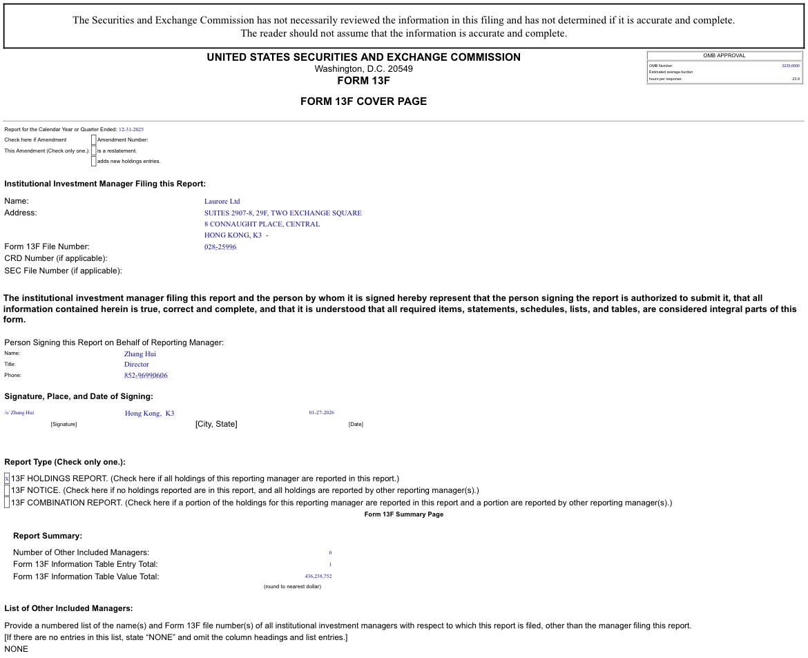The scale of the position and the lack of public footprint have raised eyebrows across the market. Laurore Ltd. has no visible website, no media presence, and no prior investment disclosures.