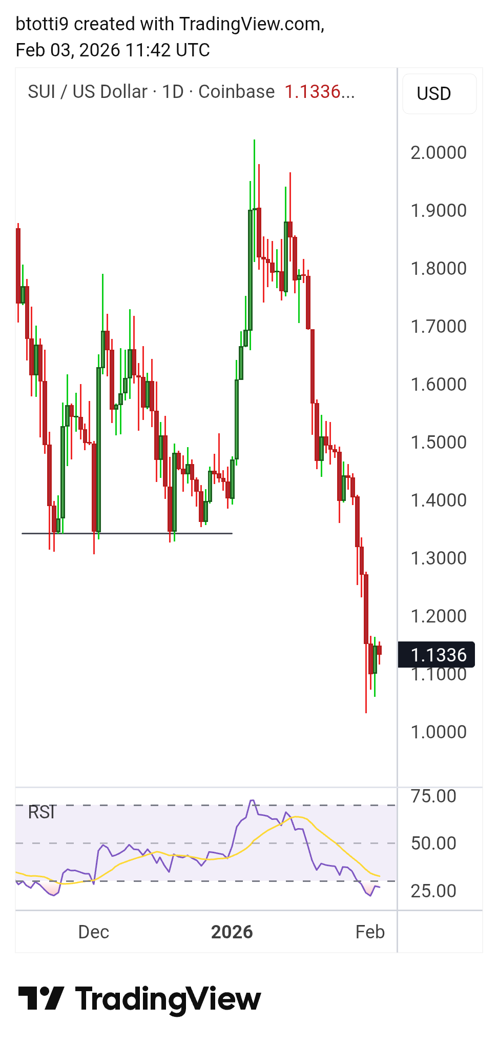 From a technical perspective, SUI appears oversold following the recent decline.