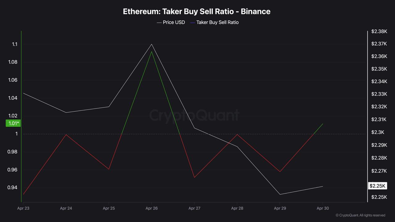 • Taker buy volume: $1B on Binance in one hour below $2,300, largest in 10-day window.