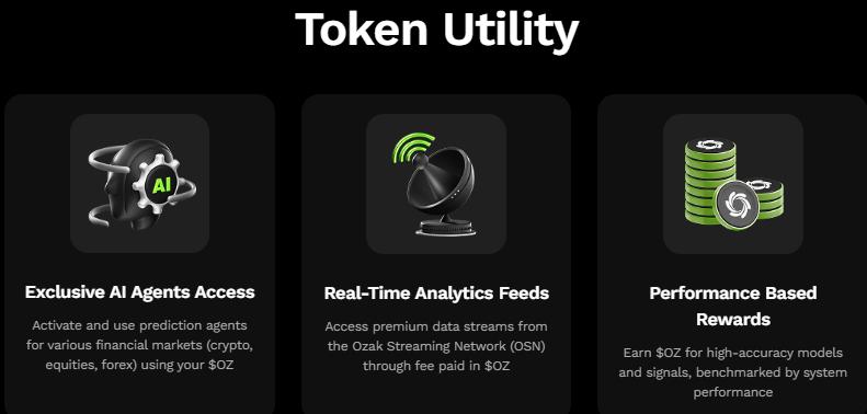 - Ozak AI focuses on AI-powered financial prediction and decentralized computing.